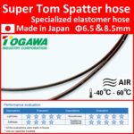 Super Tom Spatter Hose, compared to conventional air hoses, this hose has greater resistance against sparks due to the inclusion of spark resistance substances, which is appropriate for using at welding sites and automobile service garages, etc.