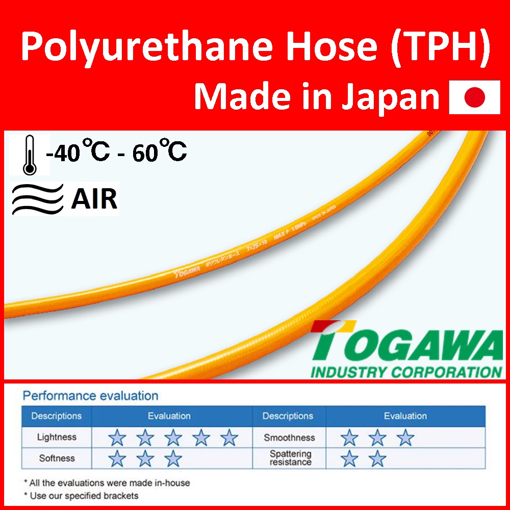 Polyurethane Hose ( TPH ) is appropriate for air tools (air-tucker, pegger machine, and impact wrench), paint, spray, in-factory air tools.
