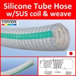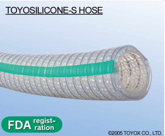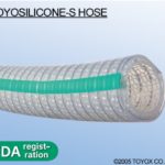 Made of silicone rubber and able to handle pressure and vacuum feeds, pressure and heat, the TOYOSILICONE Hose has the excellent features of silicone such as heat resistance up to 150°C, and low leaching, insulation, and no odor. It can be used in equipment for the food industry, pharmaceutical industry, semiconductor industry, industrial furnace industry and more. Resistant against breaking and collapsing because of its SUS 316 stainless steel reinforcing coil, the TOYOSILICONE Hose is compatible with a wide range of genuine Toyox couplings and delivers high production efficiency.
