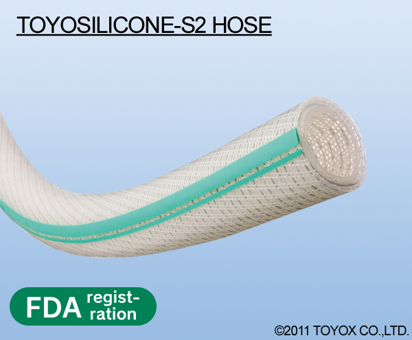 Made of silicone rubber and able to handle pressure and vacuum feeds, pressure and heat, the TOYOSILICONE-S2 Hose has the excellent features of silicone such as heat resistance up to 150°C, and low leaching, insulation, and no odor. It can be used in equipment for the food industry, pharmaceutical industry, semiconductor industry, industrial furnace industry and more. Resistant against breaking and collapsing because of its SUS 316 stainless steel reinforcing coil, the TOYOSILICONE Hose is compatible with a wide range of genuine Toyox couplings and delivers high production efficiency.